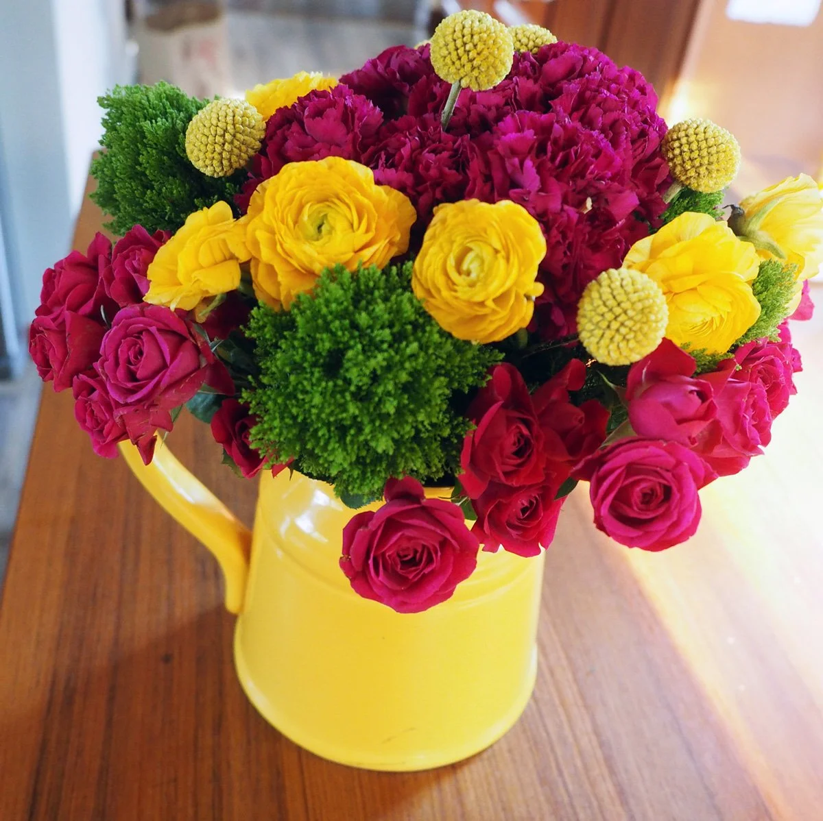 As i mentioned, my original centerpiece ideas was natural, beige grasses. So this pop of color was unintended but ended up working well.